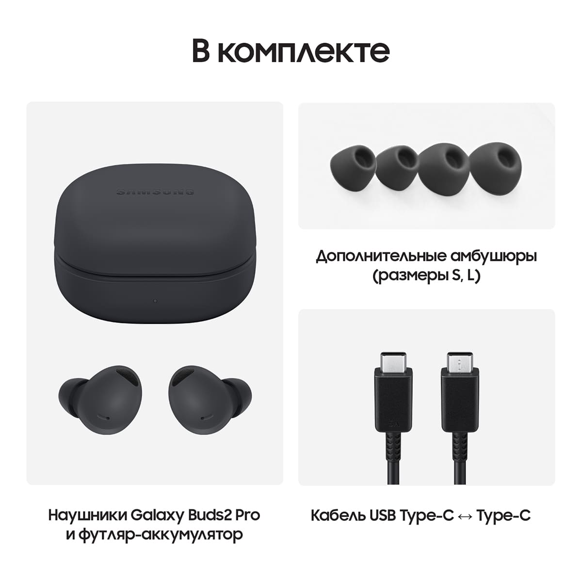 Вторая версия популярных наушников Samsung Galaxy Buds 2 Pro. Захватывающий и объёмный Hi-Fi звук с глубоким басом и кристальными высокими тонами. Двухполосные динамики со сбалансированным насыщенным звучанием и технологией интеллектуального активного шумоподавления c 3 микрофонами с высоким SNR. Еще более легкие и удобные, с комфортной и надёжной посадкой в ушах и возможностью персональной настройки звука. Продолжительное время работы благодаря емкой батарее и зарядному чехлу. Подключение по Bluetooth 5.3, защита от воды IPX7.