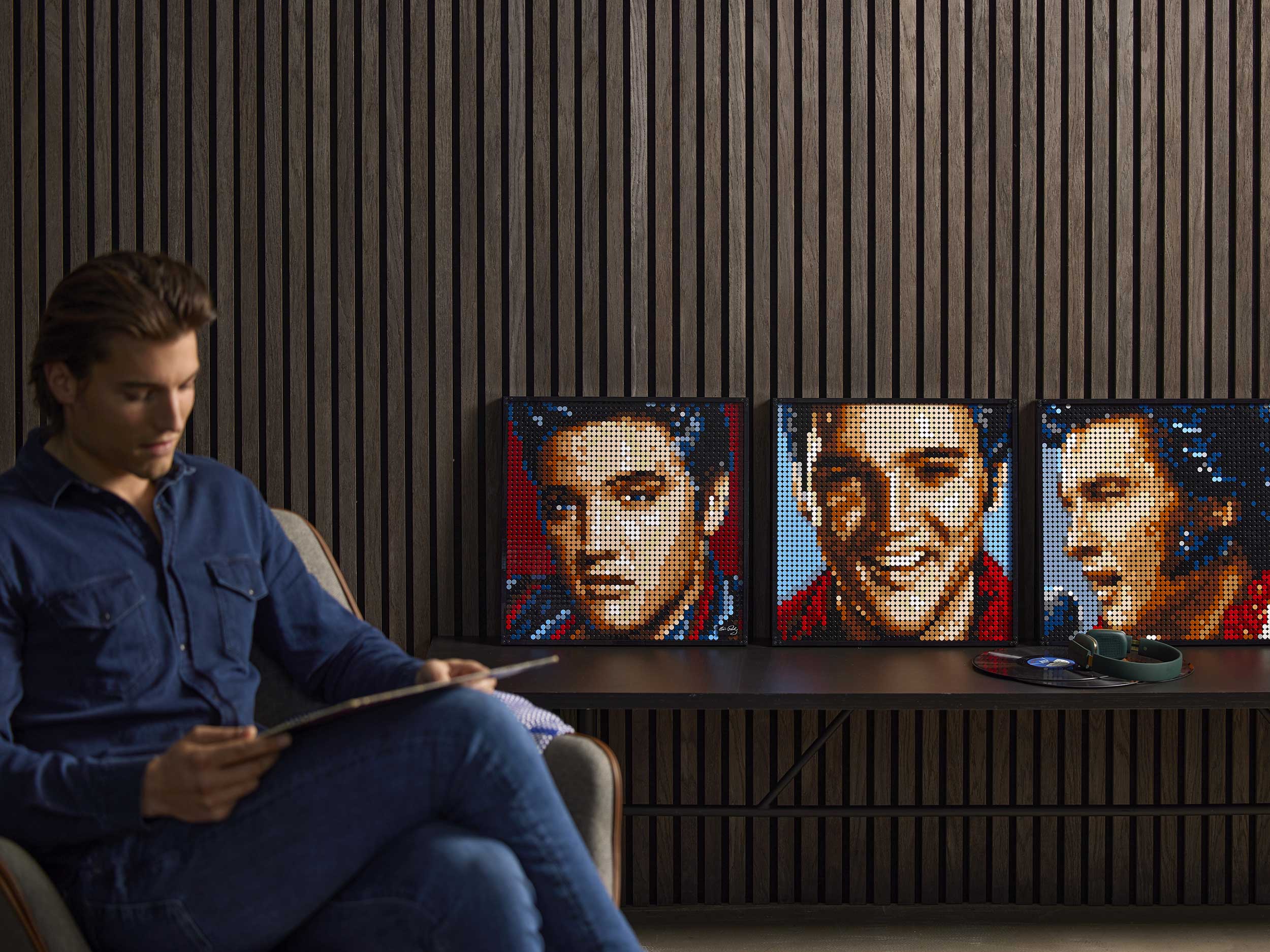 Вы можете раскрыть свою страсть как фанат LEGO® или как поклонник Элвиса Пресли и построить 1 из 3 легендарных картин из его карьеры.