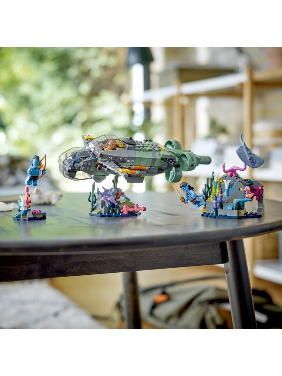 Подлодка наполнена деталями из фильма "Аватар: Путь воды" и обладает классными функциями, в том числе 2 открывающимися кабинами и 3 подвижными пропеллерами.