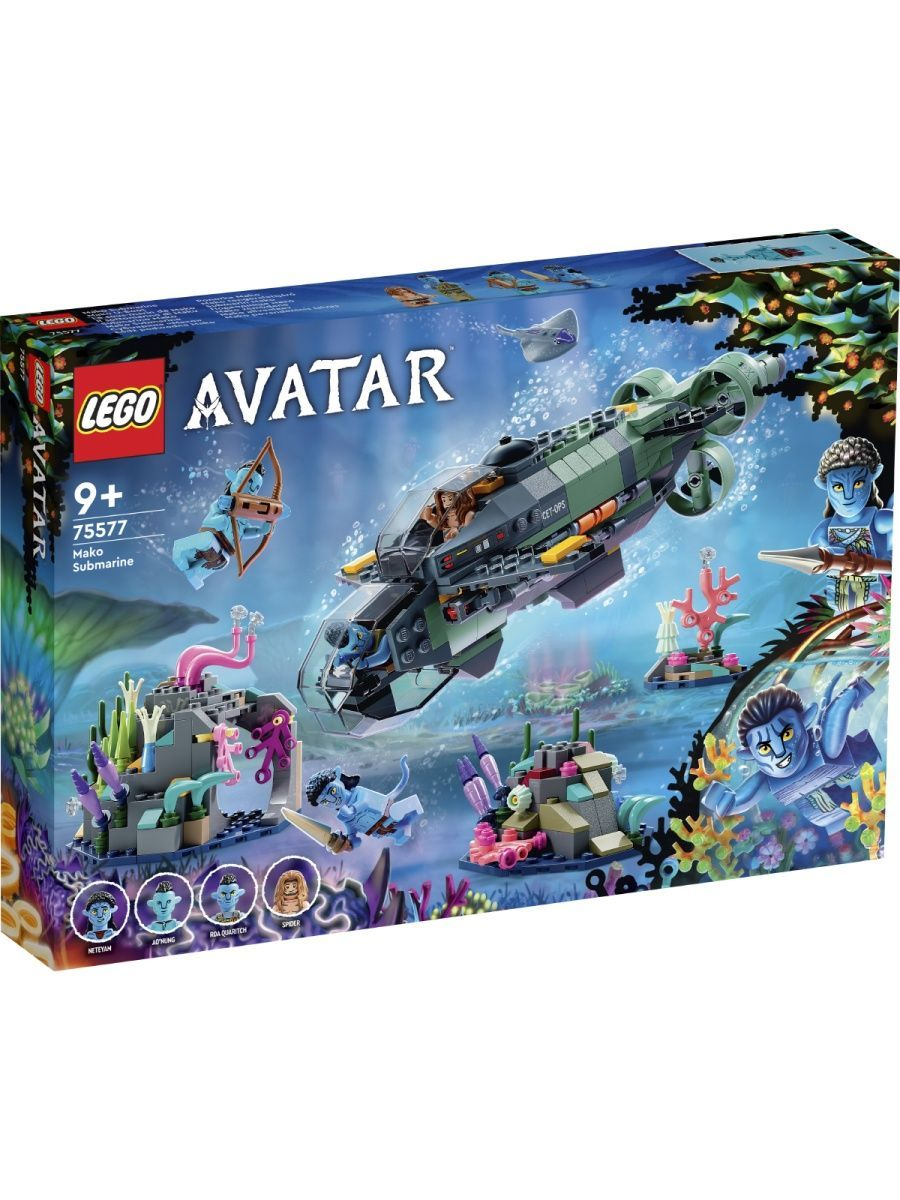 Конструктор Lego Avatar 75577 Подводная лодка Мако. Подводная лодка Mako, пилотируемая злобным RDA Куоричем, патрулирует богатое кораллами морское дно океана Пандоры. Спрячьтесь в подводной пещере, где вы сможете придумать, как освободить друга семьи Салли, Паука, с подлодки!
