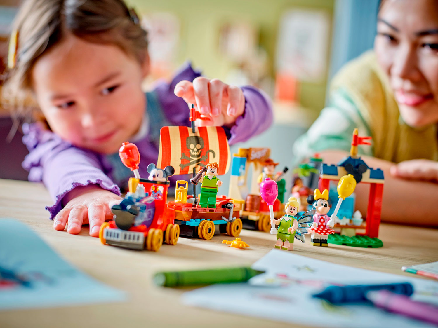 Очаруйте юных поклонников поездов в возрасте от 4 лет и старше сборной игрушкой, о которой все будут говорить. В набор LEGO® ǀ Disney «Праздничный поезд Диснея» (43212) входят станция, паровоз, 3