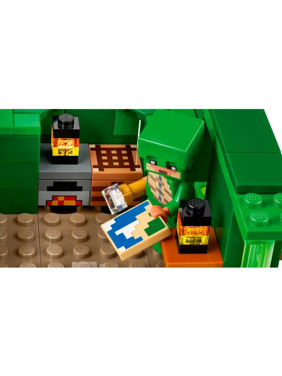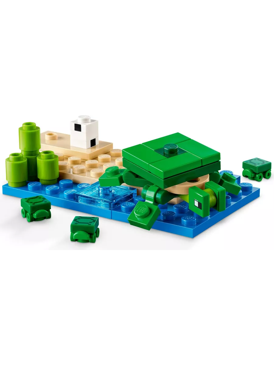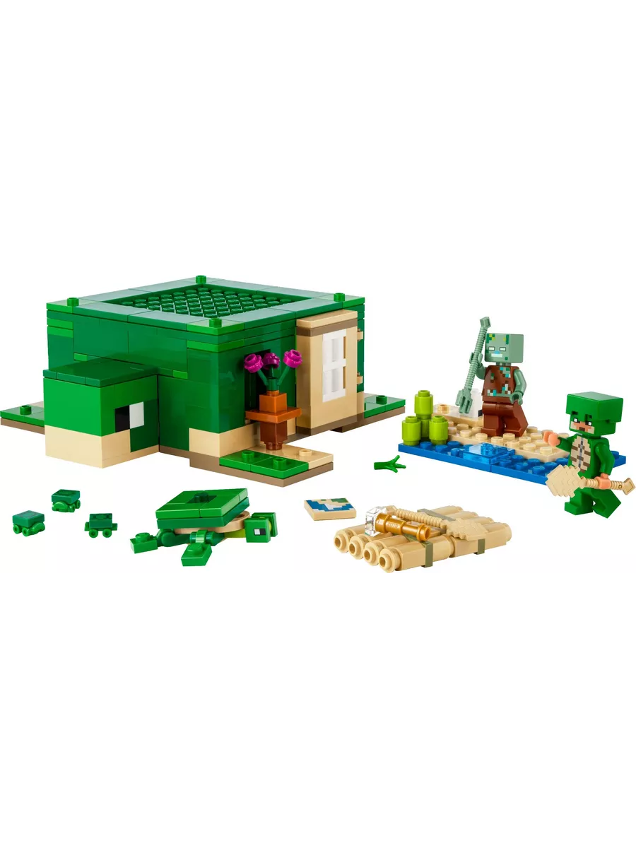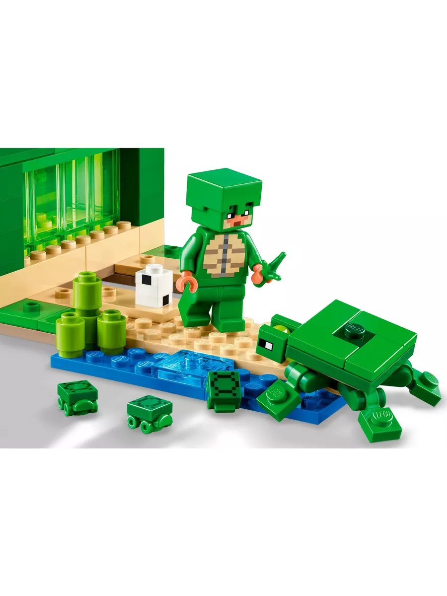 Игроки строят дом в форме черепахи прямо из Minecraft с окнами, фонарями, дверью, кроватью, столом, верстаком и плитой. Подъемная крыша обеспечивает легкий доступ внутрь. Снаружи есть пляж с сахарным тростником, черепашьими яйцами и бамбуковым плотом с веслами. Также есть знаменитые фигурки и мобы Minecraft: воин в черепашьей шкуре и шлеме, утопленник с трезубцем, черепаха, питающаяся водорослями, и три маленьких черепахи. Аксессуары также включают карту и телескоп. Любители активного отдыха, творческого конструирования и ухода за животными будут в восторге от этой универсальной игрушки. Приложение LEGO Builder позволяет строителям масштабировать и вращать модели в 3D, а также отслеживать их прогресс.