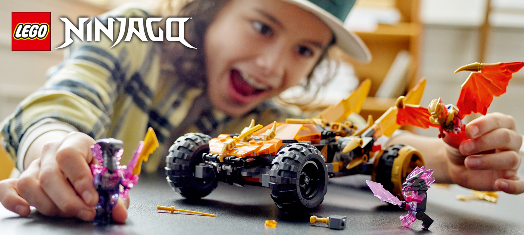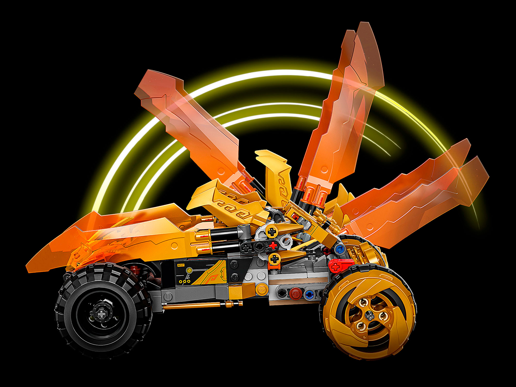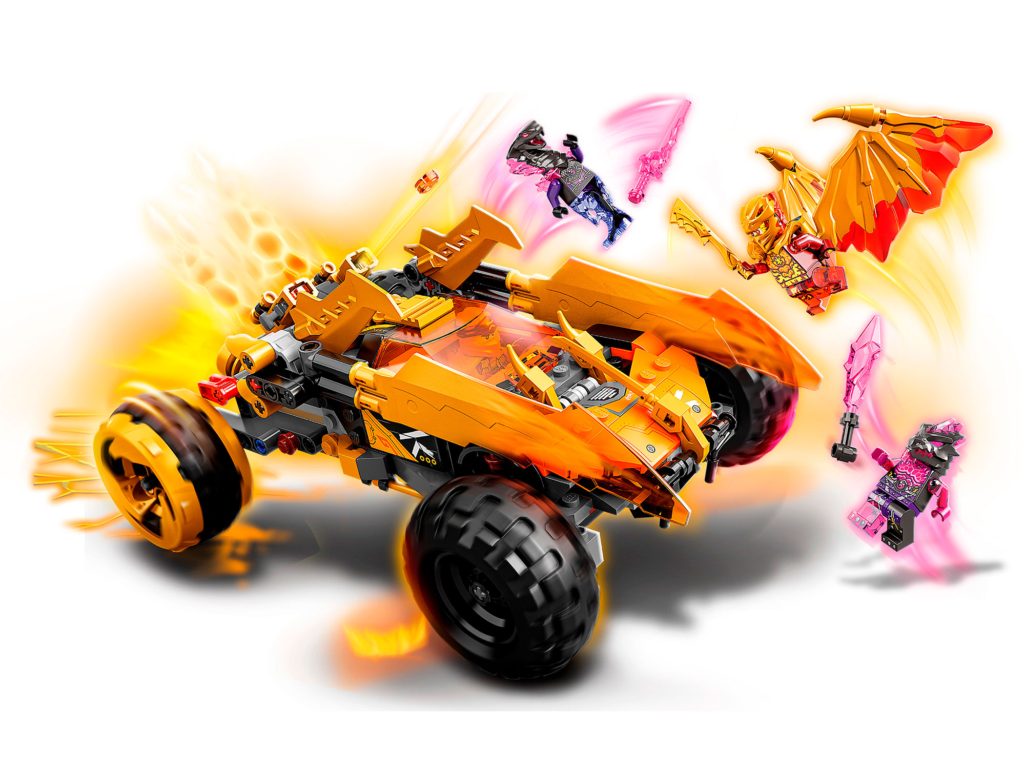 Отправляйтесь в эпическую битву на драконьем вездеходе Коула! Злобный змеиный генерал Асфира украл стихийное оружие Кая, и вам нужно его вернуть. Берегитесь громилу камня мести и его опасных кристаллов. Дайте быстрый и мощный отпор, активировав у вездехода режим атаки золотого дракона. Только вы можете остановить врагов ниндзя, которые превращают в зомби жителей города