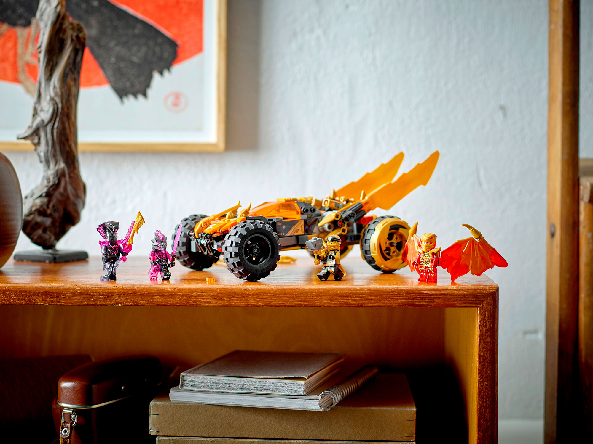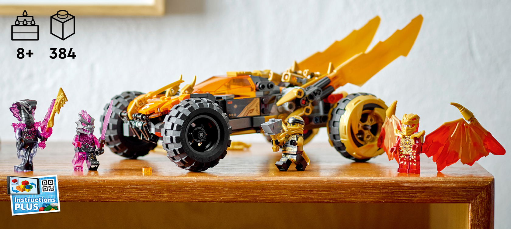 В игровой набор входят Золотой дракон Кай и Золотой Коул.