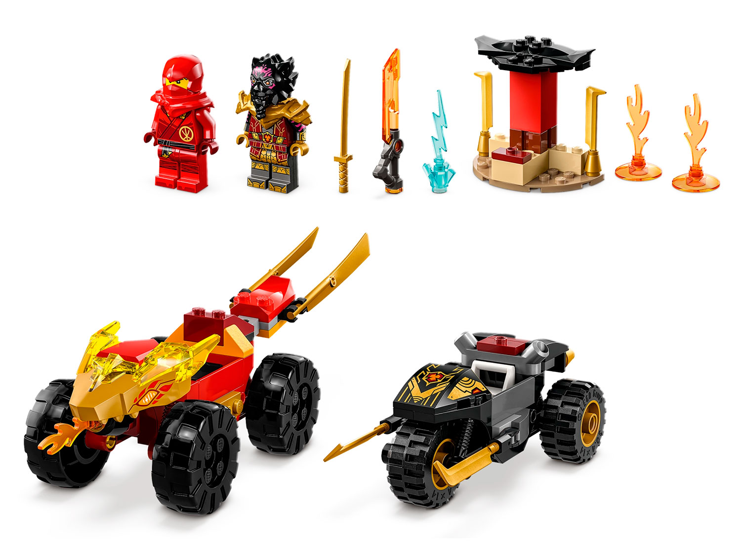 Набор Kai and Ras’s Car and Bike Battle (71789) — это идеальный способ познакомить детей в возрасте от 4 лет с захватывающим миром NINJAGO® и радостями сборки из кубиков LEGO®. Фантастический игровой набор включает в себя