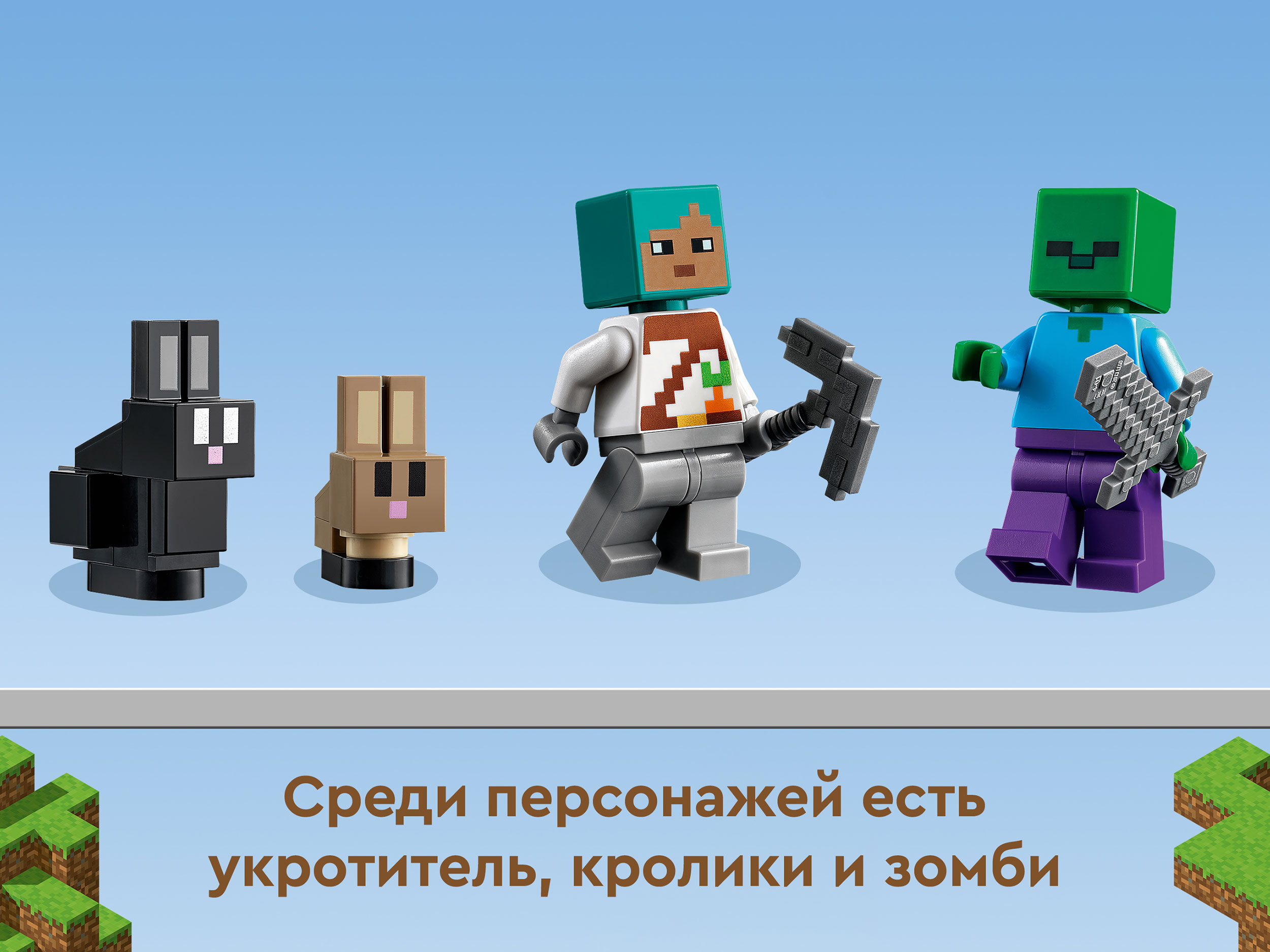 Дети смогут построить идеальный дом для своих кроликов, а затем наслаждаться творческой игрой внутри и снаружи с любимыми персонажами Minecraft®.