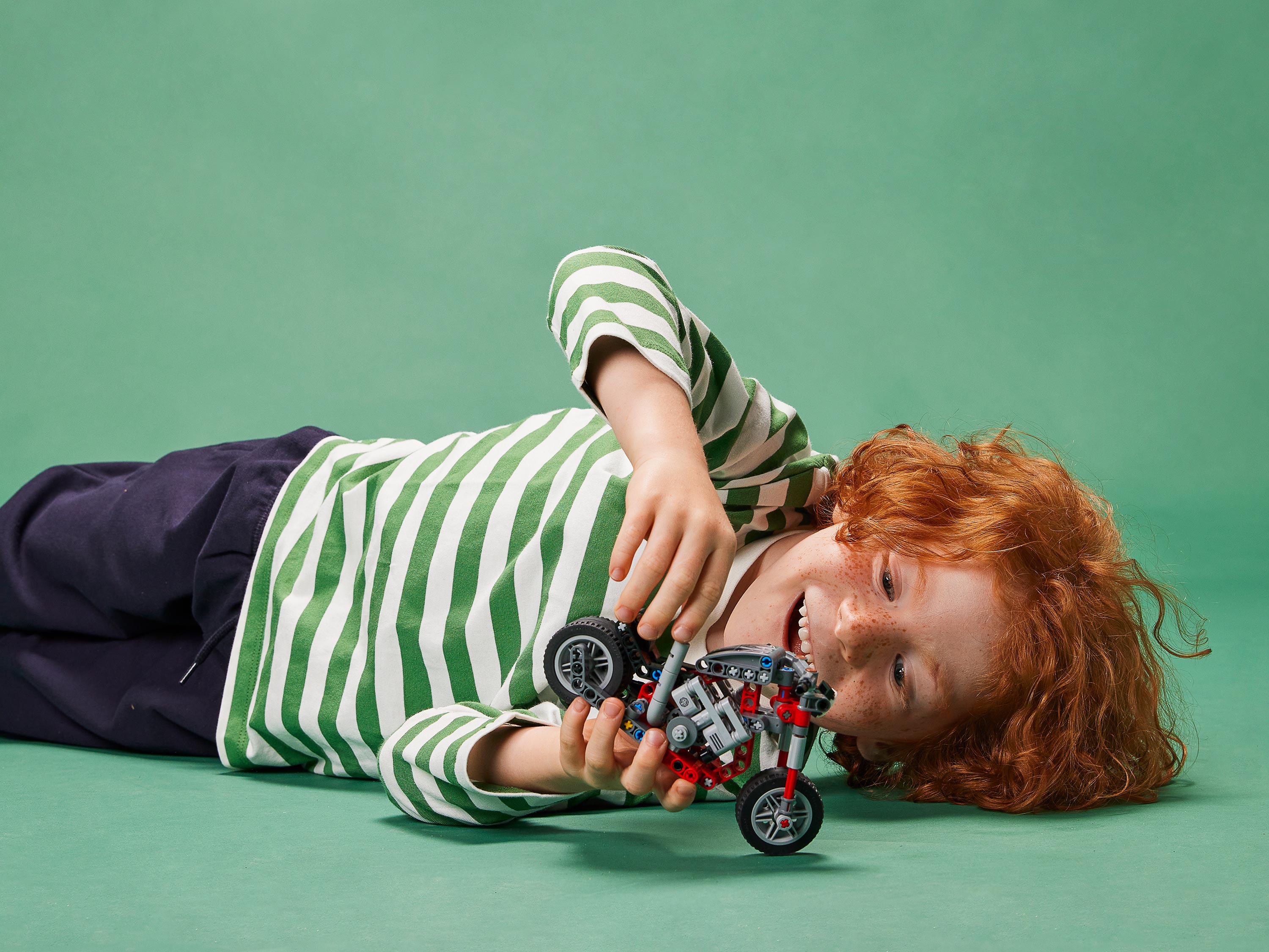 Дети получат двойное удовольствие с этой моделью мотоцикла 2-в-1 LEGO® Technic ™, которая превращается в крутой приключенческий байк.