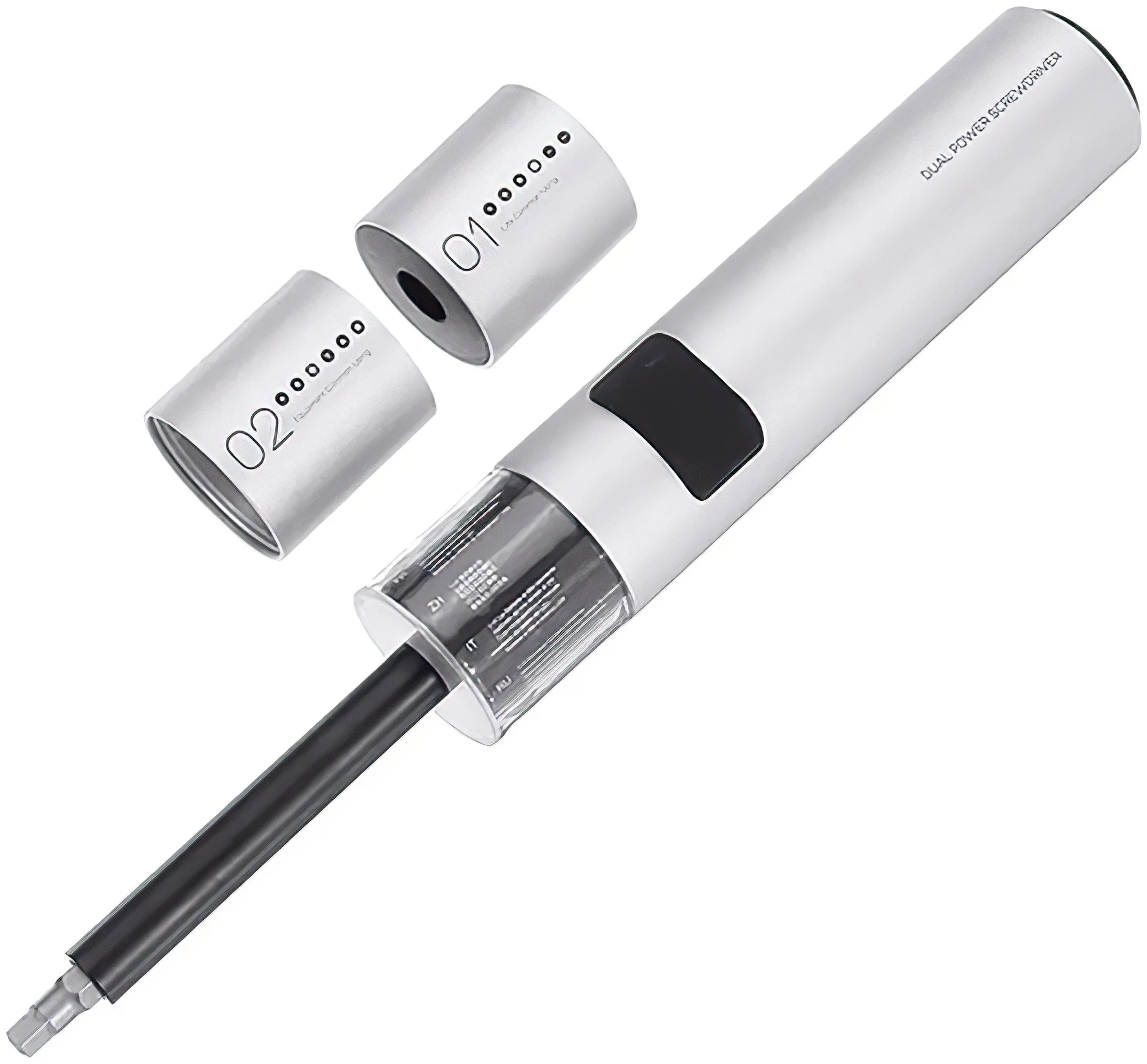36 насадок: PH0, PH1, PH2, PH3, H2, H2,5, H3, H4, H5, H6, SL3, SL4, SL5, SL6, T8H, T10H, T15H, T20H, T25H, T27H, T30H, PZ0, PZ1, PZ2, PZ3, S0, S1, S2, ▲2.0, ▲3.0, Y1, Y2, Y3, U6, U8