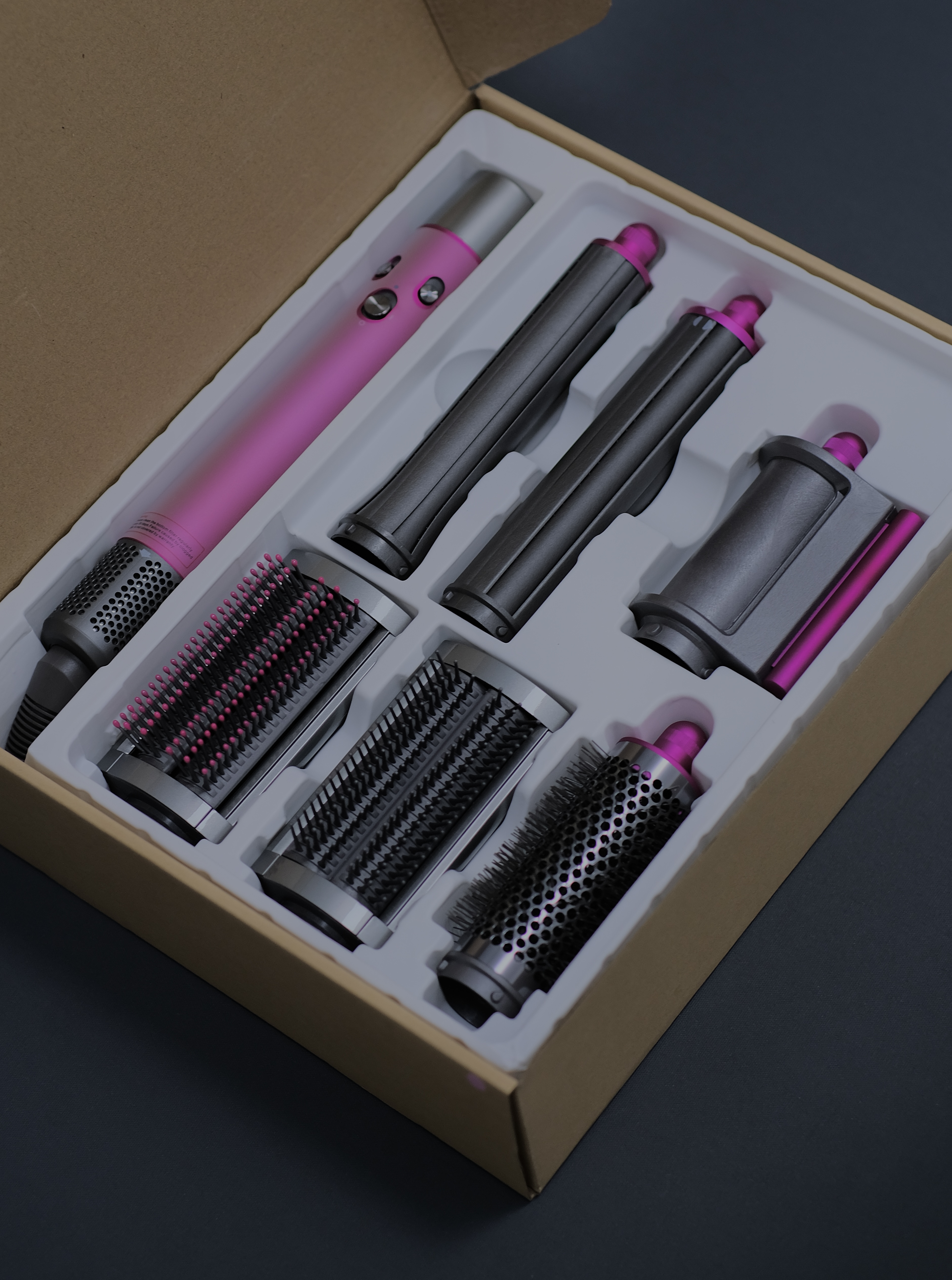 Стайлер для волос, жесткая щетка для выпрямления, мягкая щетка для выпрямления, насадка для сушки, длинная широкая цилиндрическая насадка, длинная узкая цилиндрическая насадка, круглая щетка для объема.